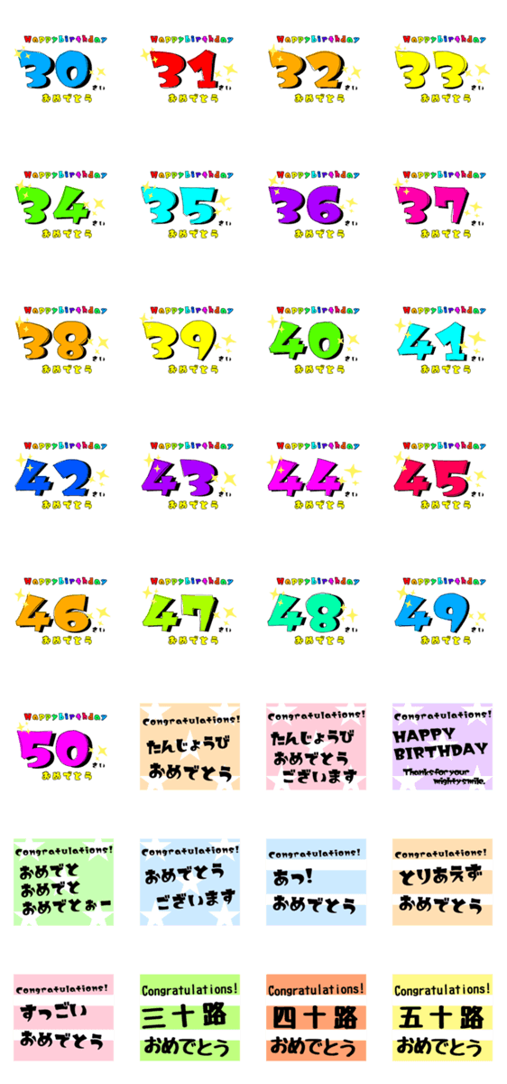 誕生日 お祝いスタンプ 30才 50才 Lineクリエイターズスタンプ Stamplist